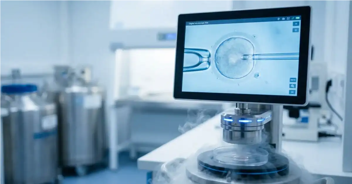 Egg freezing — scientifically known as "vitrification" — is an advanced medical procedure used for fertility preservation for women by extracting eggs from the ovaries and freezing them at ultra-rapid speeds in extremely low temperatures reaching -196°C. These eggs are stored in liquid nitrogen until needed in the future, at which point they can be thawed, fertilized, and transferred to the uterus.